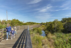 - 15 miles of new trails, many educational signs, and 4 resting areas expand and improve the trail network and make it possible to safely move between destinations in the park without driving, which was previously essential for park exploration. Trails are wide and gently sloped, allowing a wider variety of users to investigate the park’s 9 different ecosystems. To further encourage non-motorized transportation, a free bike-share program is available to all visitors for trips up to 3 hours.