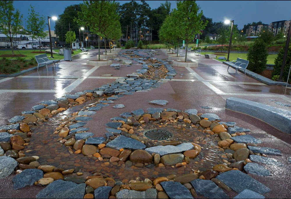 The district’s combined sewer overflow problem could have been solved with a traditional gray solution like new sewer tunnels with an estimated cost of $70 million, but local advocates campaigned for the less expensive $23-million Historic Fourth Ward Park. The park manages nearly the same amount of water as the proposed sewer tunnels, released the city from the consent decree from the U.S. Environmental Protection agency, and saved the City approximately $50 million while providing multiple additional benefits.