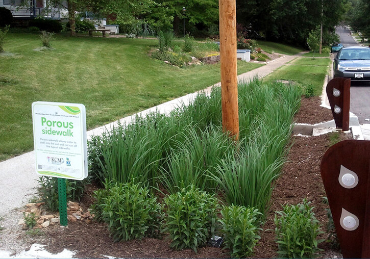 The Middle Blue River Basin Green Solutions Pilot Project was the first large-scale green infrastructure project for Kansas City’s Overflow Control Program. Like many cities that suffer from Combined Sewer Overflows (CSOs), Kansas City is in the process of exploring several traditional and sustainable “green” alternatives to meet EPA water quality standards. The 100-acre pilot project, located in a largely residential neighborhood, tested the effectiveness of green infrastructure improvements within the public street right-of-way to intercept, detain, and control the amount of stormwater entering the combined sewer system. Prior to this project, the 75-year-old neighborhood was characterized by deteriorating street and sewer infrastructure and localized flooding. Through this pilot project, which is celebrated as the first “KC Green Neighborhood,” the City has determined that green infrastructure can be effective and economically viable. Using lessons learned from the pilot, the City is looking to expand green infrastructure with modifications into adjacent neighborhoods.