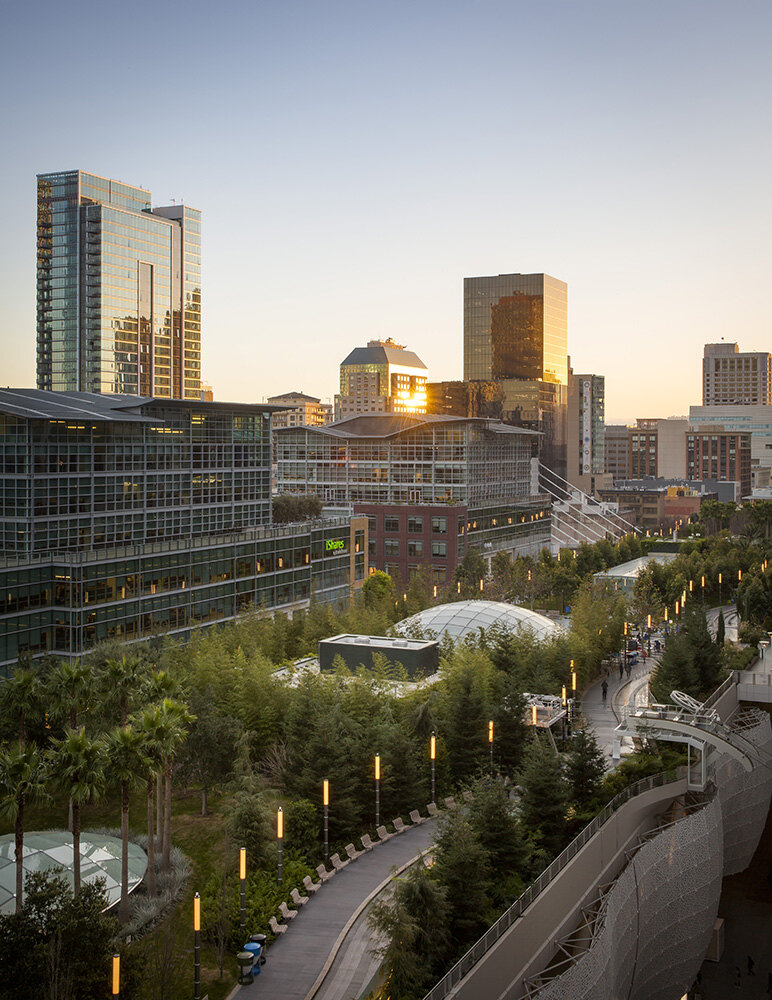 Salesforce Park is a 5.4-acre rooftop park atop a multimodal transit center in downtown San Francisco, California. The public park, which can be accessed by elevator, escalator, stairs, skybridge, or gondola from the street below, brings nature, horticulture, art, and a rich mixture of active programmed and botanical experiences into an urban space. The rooftop park includes event lawns, site-specific art installations, botanical gardens, a walking trail, interactive fountains, a children’s play area, and an amphitheater. Currently linking 11 transit systems, the Transit Center is a major transportation hub connecting the city to the broader region. The rooftop park runs for nearly 4 blocks above the Transit Center and has become the central public open space of the mixed-use East Cut neighborhood — an area rapidly growing in popularity but lacking in public green space.